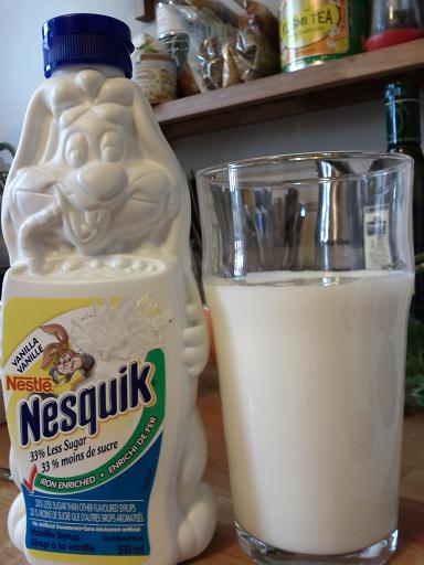 Le Nesquik à saveur de Vanille (qui contient quand même 33% moins de sucre et qui est enrichi de fer! Wow!)