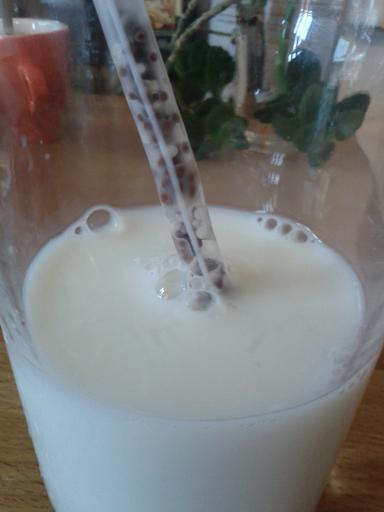 Très ingénieux et très simple comme processus: Tu pognes ta paille, pis tu la sacre dans le lait!