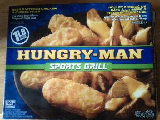 Le Hungry Man Sports Grill – Poulet enrobé de pâte à la bière et frites au fromage de Swanson