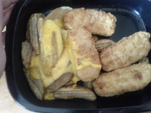 Les frites sont un peu sèches, le fromage ne goûte pas grand chose, le poulet est mou mais calvaire que t’as plus faim après ça mon ami(e)!