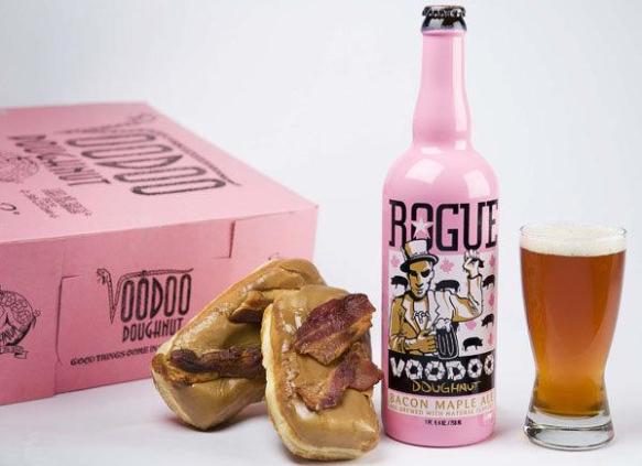 Voici donc la bière, gracieuseté de la brasserie Rogue, à saveur de beigne à l’érable au bacon de Voodoo Doughnut.