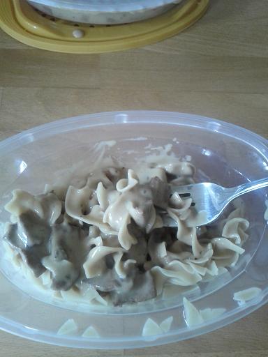 Vous versez donc la sauce dans les pâtes et tiguidou laï laï, un boeuf Stroganoff est né!