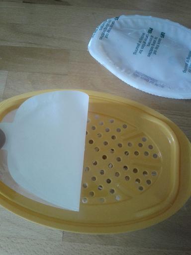 Retirez du micro-ondes, pour peler la pellicule qui recouvre l’innovateur couvercle-passoire.