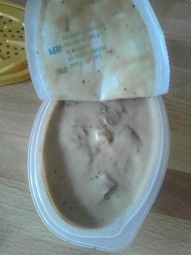 Après, vous ouvrez la sauce (crémeuse, aux champignons, avec du boeuf)!