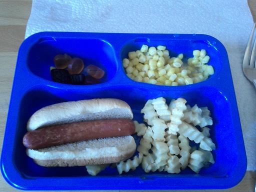 Père: Tiens, on prend des ciseaux pis on découpe touuuuuuuuuuut le plastique sauf sur le maïs. Tu veux m’aider?