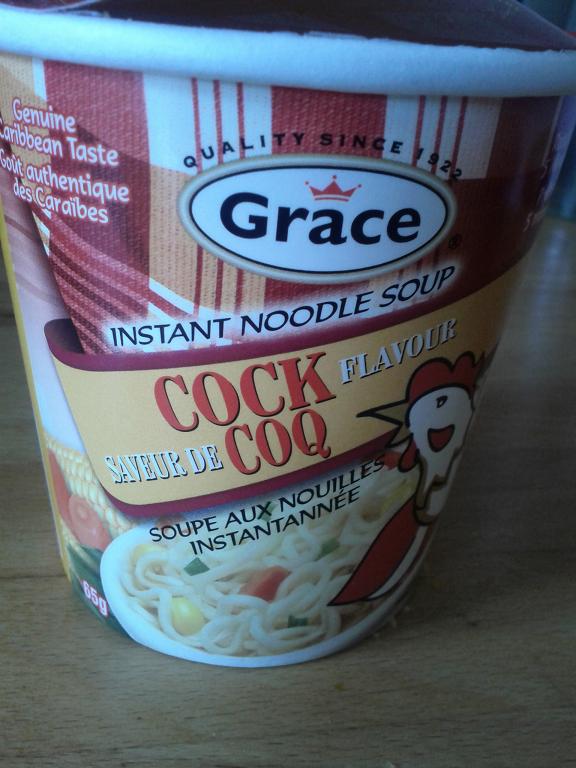 En Jamaïque, c’est une marque très populaire et franchement, c’est une bonne soupe! Et non, pas de mauvaise traduction! C’Est de même qu’ils l’appellent vraiment! Et qui sait quand on mange du poulet si c’est une poule ou un coq!?! Ce produit existe depuis des années…