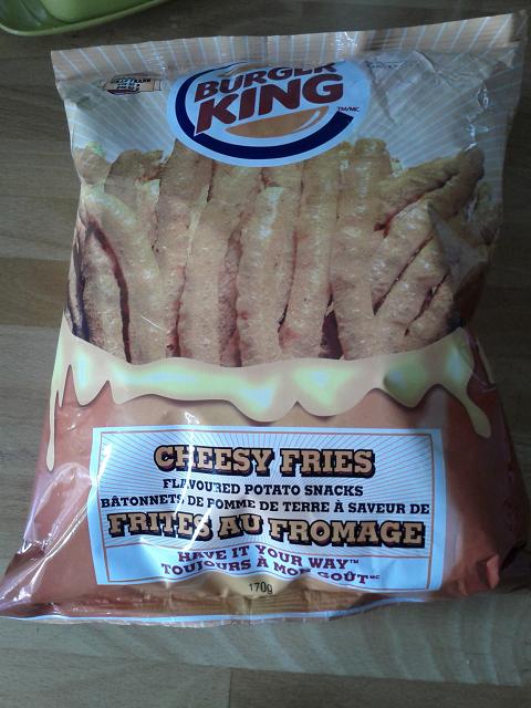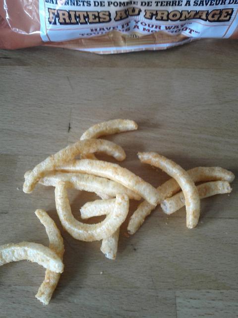 Les bâtonnets de pommes de terre à saveur de frites au frômâge (Si vous êtes capable de dire cette phrase là sans prendre votre souffle , je pense que Rédio-Canada vous offre un poste à temps plein (et en prononçant froumààààge et non frômâge… ça va de soi.)).