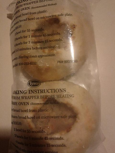 Laissez-moi vous présenter les »Stuffed Mini Bread Bowls (À saveur de poulet, brocoli et fromâge) » de Tyson.