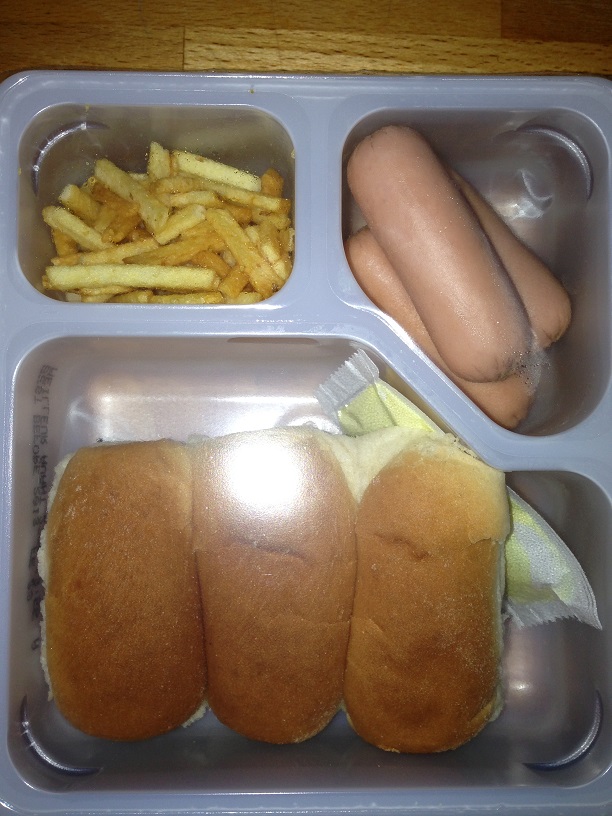 3,27$ pour trois bouttes de pain + trois moignons de soucisses + un sachet de moutarde + un sachet de ketchup + une demi-pincée de juliennes???