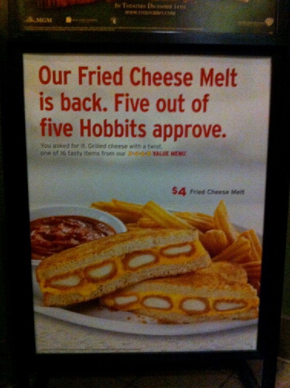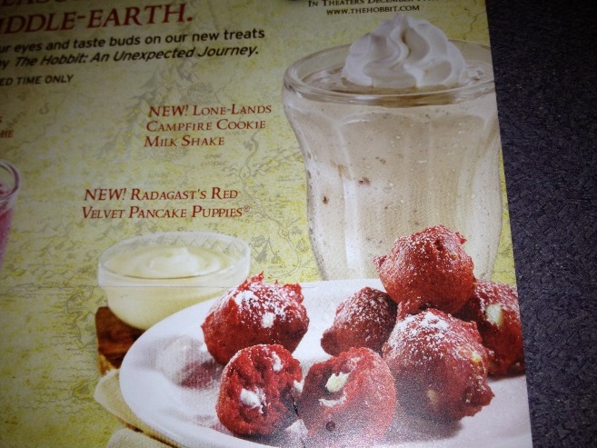 En effet, Denny’s offrent une magnifique sélection d’items plus délicieux les uns que les autres et ceci dans la thématique du Hobbit (le film était en grosse promo au temps des fêtes).