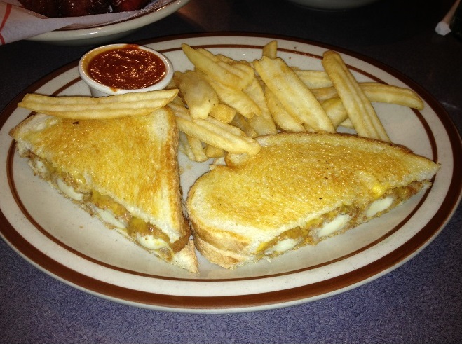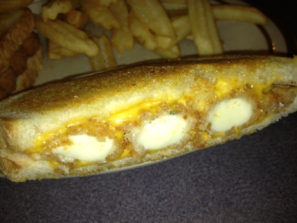 Du pain blanc, du fromage, de la friture et du beurre. Oui, il s’agit bel et bien d’un grilled cheese auquel on a ajouté des bâtonnets de mozzarella frits.