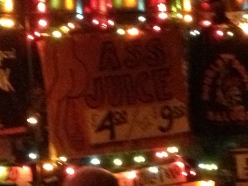 Le Double-Down est reconnu pour ses drinks inventifs, dont le très célèbre ASS JUICE qui se vend à 4$, ou 2 pour 9$. Non ceci n’est pas une erreur, la preuve :