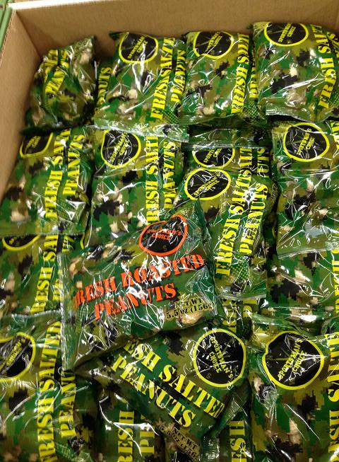 Du camouflage dans le gâteau... Du camouflage dans les peanuts... Peuvent ben toujours aller en guerre, y'ont du stock à écouler!