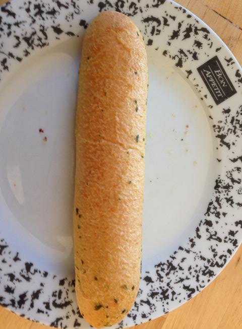 C’est du pain à l’ail avec du frômâge dans la croûte… À vrai dire, c’est des gros bâtons de mozzarella graissés mur à mur de beurre à l’ail!