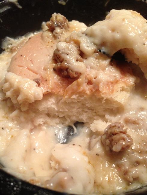 Je dois vous dire que des « bicuits & gravy », j’en ai déjà mangé et que j’ai beaucoup aimé! Mais ça? Ça, c’est vraiment infecte!