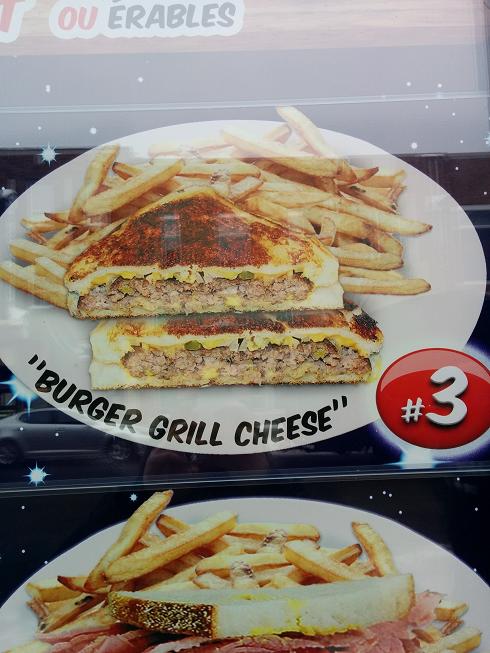 Un burger de type « hybride » ET une faute d’orthographe? (Pour ceux et celles qui n’ont pas leur anglais de 6ième année…Ça s’écrit grillED cheese!)