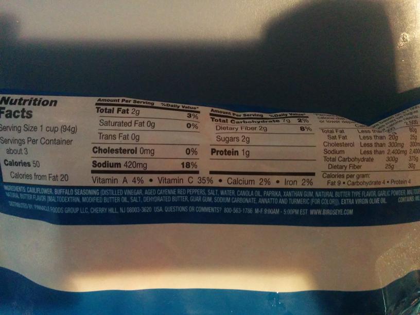 Le tout nouveau « Flavor Full Buffalo Cauliflower » de Bird’s Eye! (Probablement une division de Monsanto)!