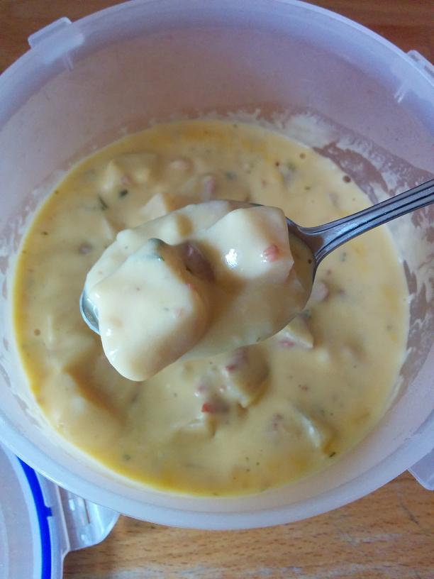 Je goûte la soupe chunky et la saveur qui me vient au papilles en premier (et de manière prédominante) est… LA BIÈRE!?!?!?!?! KÉSSÉ ÇA T4B4RN4K????