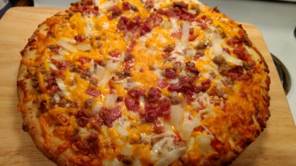 Ben cette pizza-là goûte l’intérieur dudit Big King qu’on aurait « spreadé » sur une pâte à pizza et qu’on aurait saupoudré de chippits de Bacon!