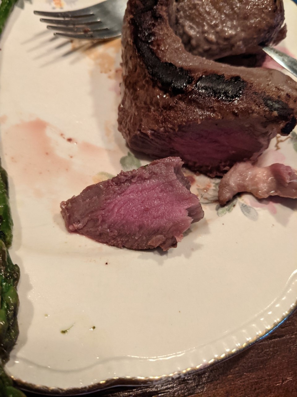 Loin d’être dégeu, c’est un petit steak un peu caoutchouteux mais pas d’un laid choquant pour les papilles…