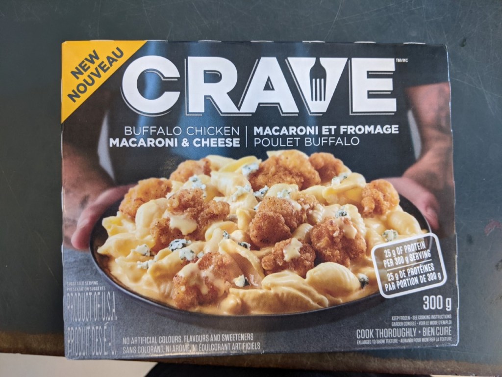Les croquettes de poulet pané ne sont étonnamment pas trop mollassonnes et la présence du fromage bleu est un beau changement des dîners congelés traditionnels…