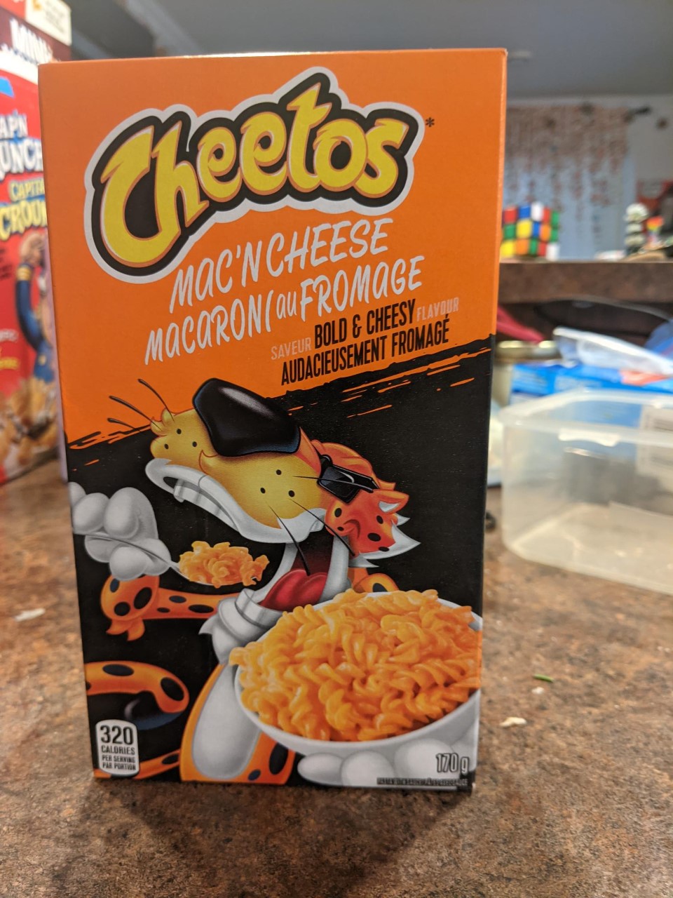 Deux macaronis au fromage en début, je vais ne profiter pour plugger mon nouveau site de reviews de Kraft Dinners de toutes sortes où je trouve d’ailleurs que le Cheetos écœure à la longue.
