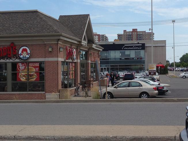 Si vous ne connaissez pas les Galeries d’Anjou, c’est comme un estifie de gros centre-commercial entouré des meilleurs restos qu’on ne trouve pas dans les quartiers branchés de Mourial : Boston Pizza, Buffet La Stanza, Madison’s et bien sûr Wendy’s qu’on aperçoit au loin sur la photo!