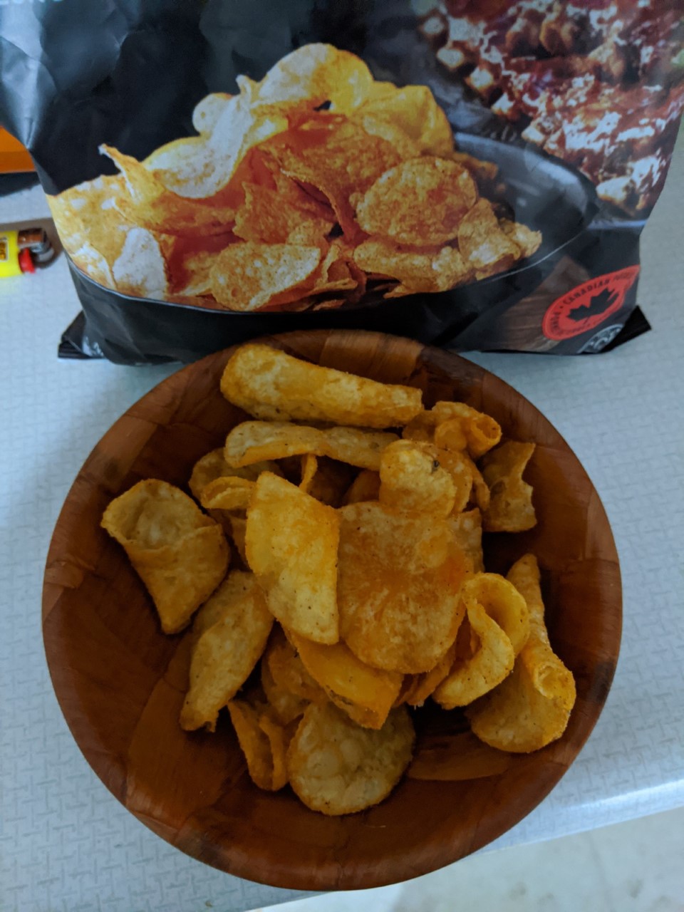 Juste des chips cuites à la marmite ben ordinaires, avec une saveur de ketchup ben ordinaire et c’est parfait comme ça!