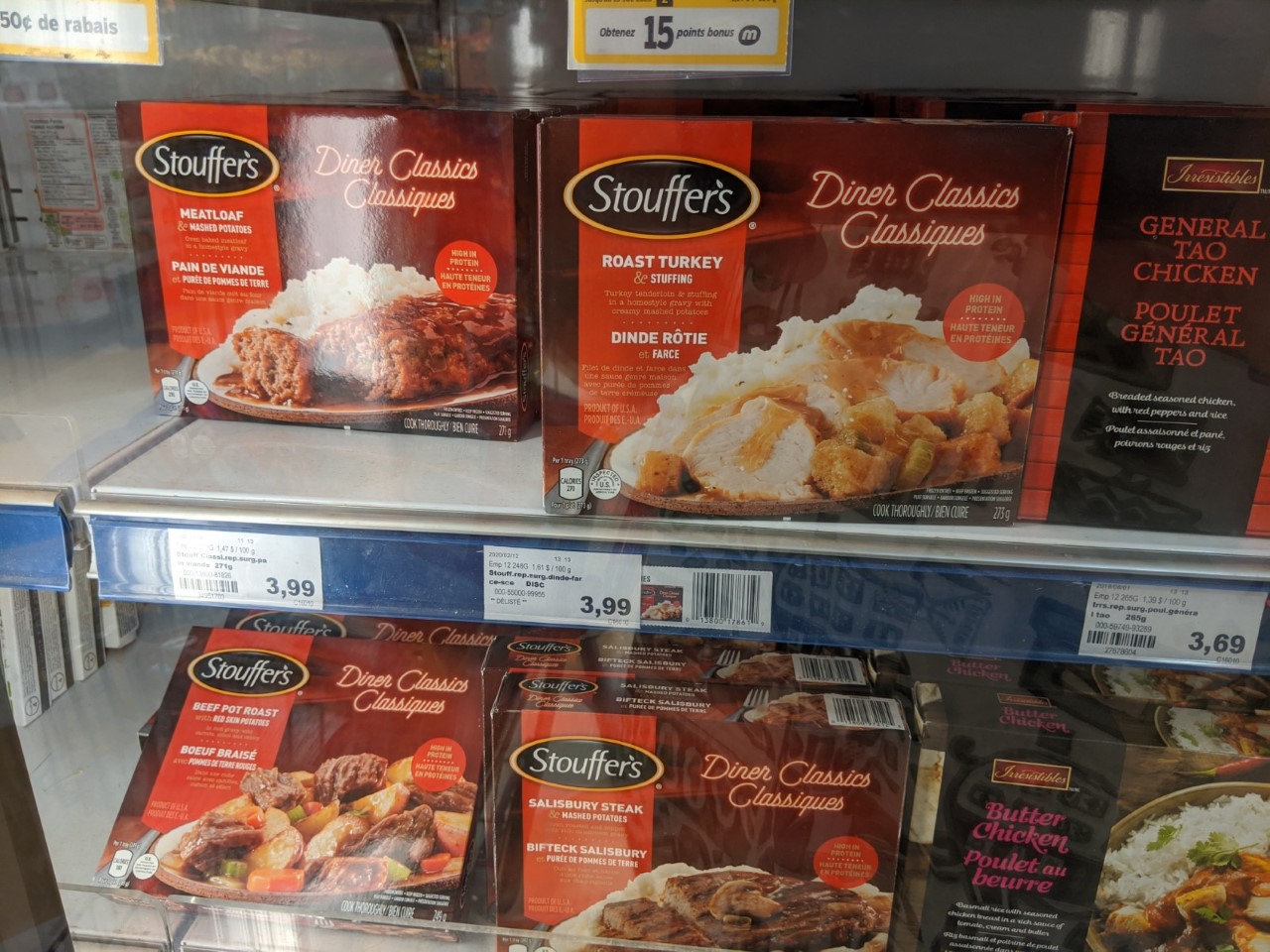 Quelle n’était pas ma surprise d’apercevoir le plat congelé suivant dans les allées de mon Wal-Mart local (le Wal-mart de Shawi aka l’asile à ciel ouvert)…
